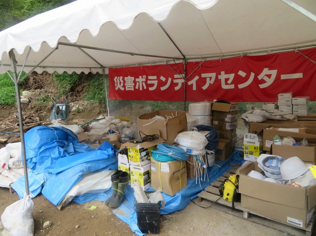 この日は、雨の平日。休日は100名以上集まりごった返したボランティアセンターも、この日は全体で20名弱ほど。それでも、九州各地や関東からボランティアが訪問し、土砂撤去などの作業を行っていた。ボランティアの方に感謝である。 関東からお越しのベテランボランティアは語った、「雨でも、被災者にとっては毎日が不安。遠方からボランティアに来る方は、スケジュールの関係で雨でも必ず被災地入りする。だから、ボランティアセンターはぜひ毎日受け入れ対応をしてほしい」と。 貴重なご意見だ。なお、受付のない時間帯は、ボランティアセンター内にある全テントの柱を支えている錘の土嚢交換を行った。この時に学んだことは、「後方支援も大切だ。ボランティアの受け皿もしっかり整っていないと、復興に支障が出る」ということ。 様々な立場の人がいて、復興が進むものなのだ。