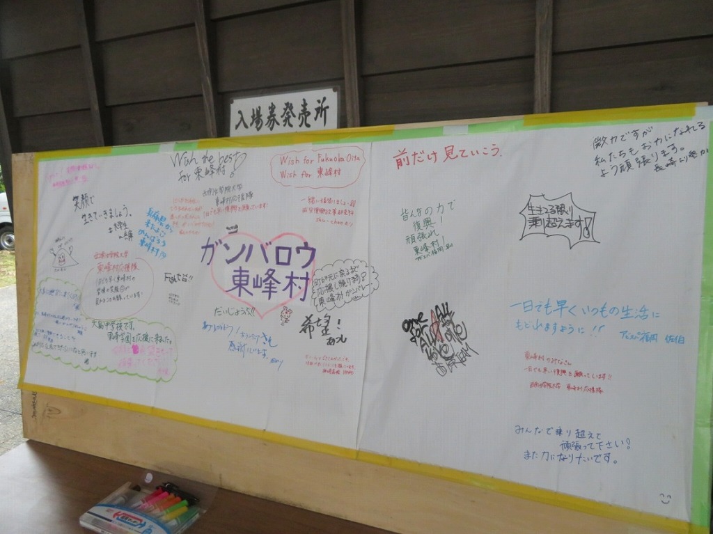 写真5:ボランティアセンターに、応援メッセージボード。ガンバロウ東峰村!
