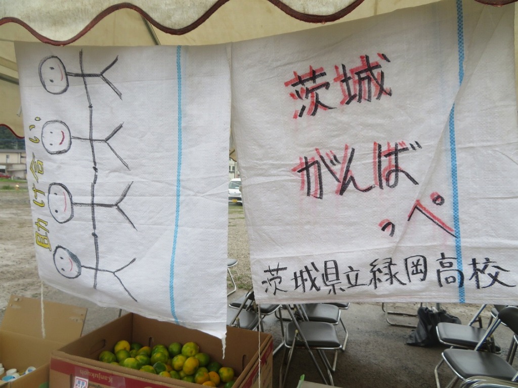 写真13:テントには、全国各地からの激励メッセージを掲載。画像は、茨城県の高校生から。ありがとう。