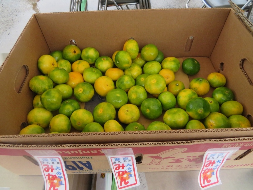 写真14:津久見市名産の早生みかん。ボランティアに配布。被災地のみなさま、ありがとうございます。